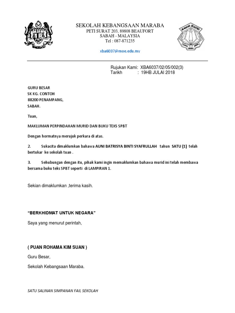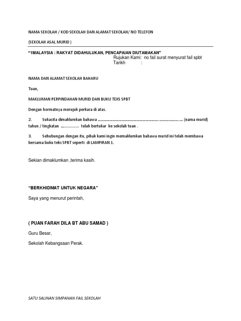 Surat Permohonan Pertukaran Sekolah Tingkatan 6 Letter 7saudara Com