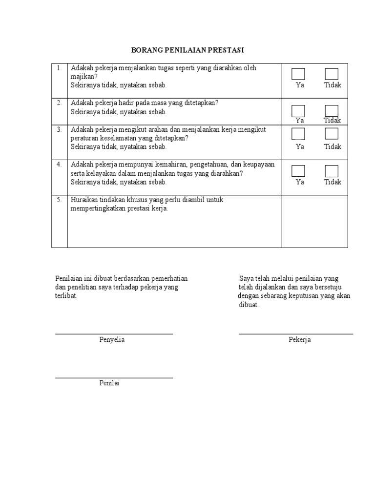 Contoh Borang Penilaian Prestasi Kerja Swasta