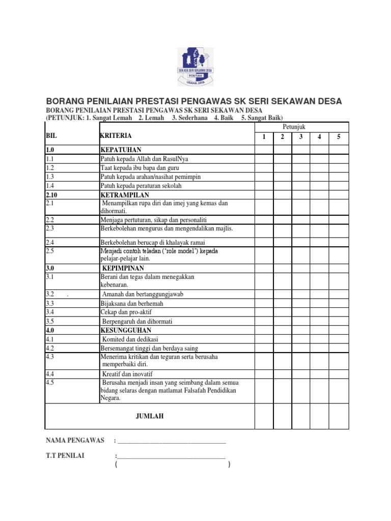 Borang Penilaian Prestasi Pengawas Pdf